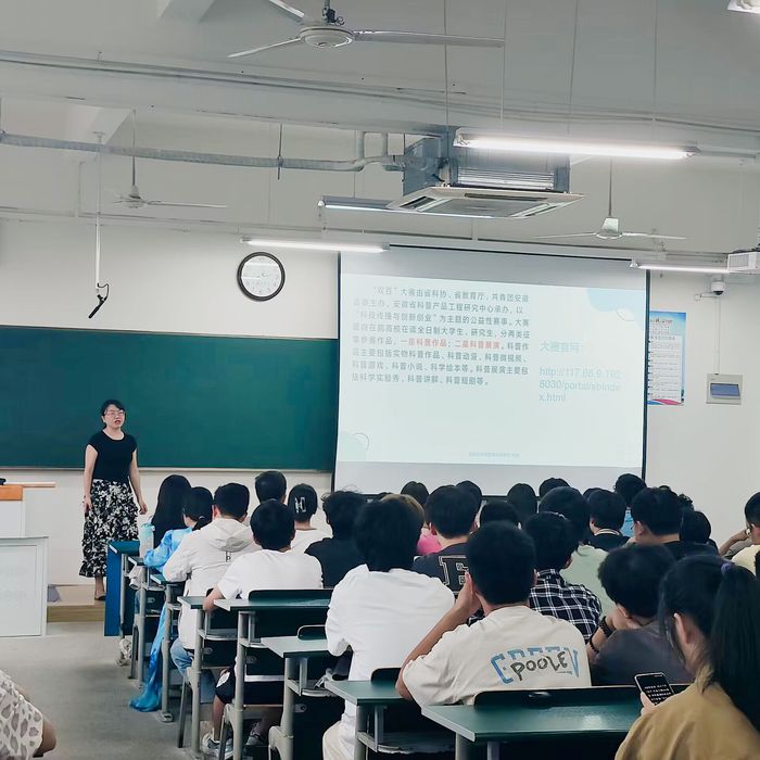 为引导大学生积极普及科学知识、弘扬科学精神、传播科学思想、倡导科学方法,9月13日下午,检验学院在逸夫科技楼3301教室举行安徽省百所高校百万大学生科普创意创新大赛(简称“双百”大赛)培训会。会议邀请医学信息学院宛楠副教授为同学们作培训,检验学院党总支书记、副院长刘影,辅导员张秦、张琪,以及学院近200名学生参加。培训会由张琪主持。