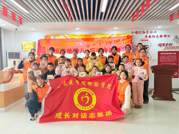 腊八节是中华民族传统节日之一,承载着丰收感恩、祈福迎新的文化内涵。为弘扬优秀传统文化,增进青少年对传统节日的认知与情感认同,1月18日,检验学院成长对话志愿团前往龙华社区党群服务中心,开展“五谷绘腊八,巧手传温情”主题志愿服务活动。文化宣讲探源流,腊八故事润童心。活动在志愿者的文化小讲堂中拉开序幕。通过生动有趣的PPT展示和互动讲解,志愿者向孩子们介绍了腊八节的历史渊源与民俗传统。课堂内容涵盖“赤豆打鬼”“纪念岳飞”等传说故事,详细阐述了腊八粥、腊八蒜等南北食俗的文化寓意。