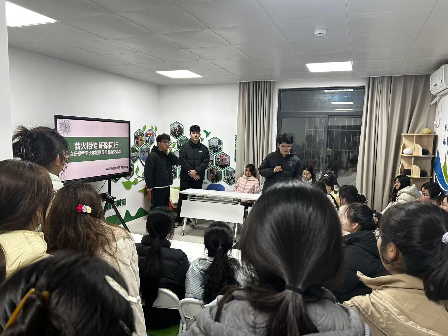 为帮助低年级学子明晰考研方向、掌握备考方法,营造勤学善思、互助共进的优良学风。3月17日晚上,检验学院在“一站式”学生社区明德行苑举办“薪火相传,研路同行”考研解惑面对面交流会。本次活动邀请了6位2025届成功考取本校临床检验诊断学专业的研究生担任分享嘉宾,学院医学检验技术专业50多位有兴趣的同学参加,活动现场氛围热烈、干货满满。