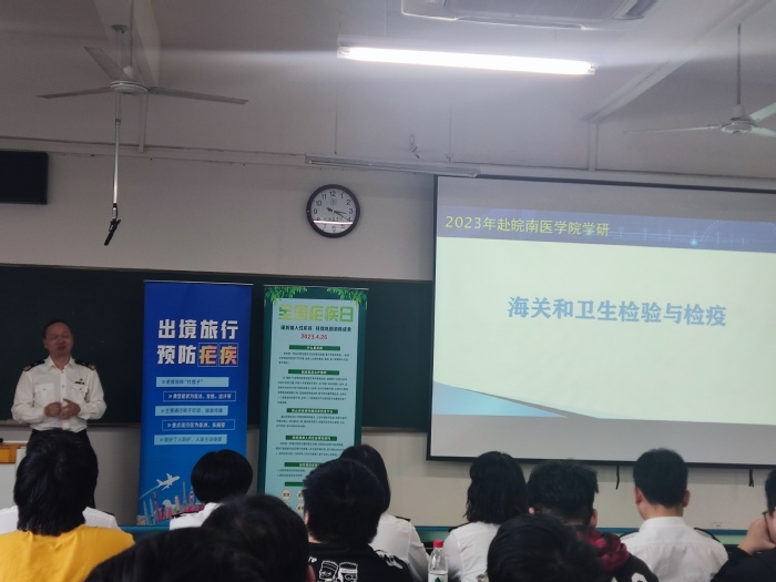 为增强大学生生物国门安全意识,提高卫生检验与检疫专业学生对海关工作的了解,4月21日下午,检验学院邀请合肥海关卫生检疫处和芜湖海关监控科相关人员在逸夫科技楼开展生物安全宣讲,检验学院2020级卫生检验与检疫专业全体学生参加,卫生检验与检疫教研室主任孙恩涛教授主持。