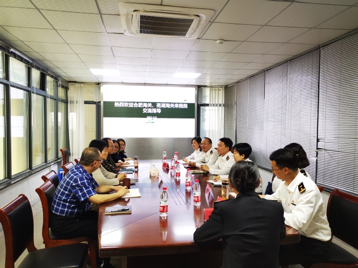 宣讲之前,学院党总支书记崔晓霞、院长洪亮对合肥海关卫生检疫处副处长祝高峰、科长计玉洁,芜湖海关监控科科长先欲飞等一行到来表示欢迎。双方就学生见习实习、就业、教学科研、师资培养等方面进行了座谈交流,并在充分发挥海关资源优势,拓宽学生就业方向等方面达成一致意见。