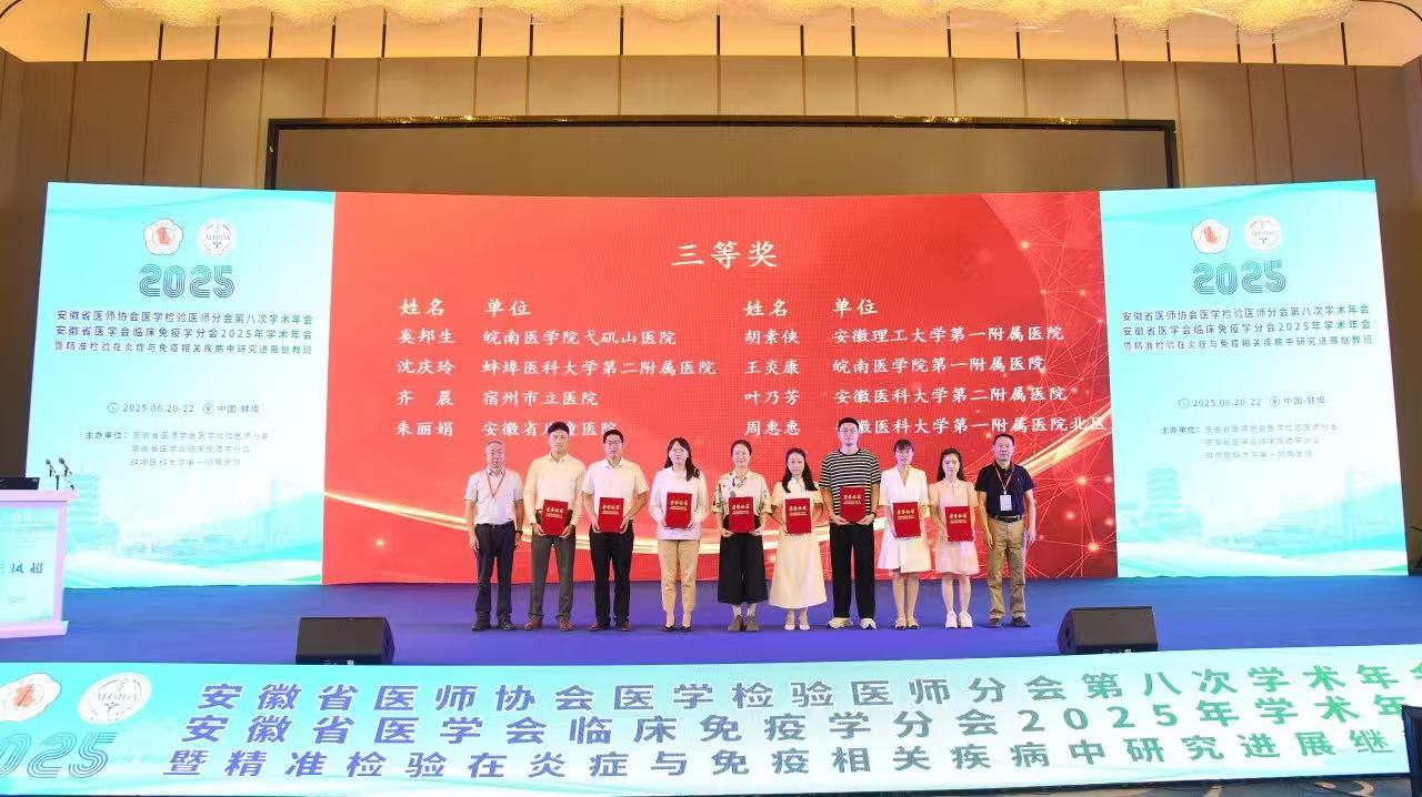 6月20日,由安徽省医师协会医学检验医师分会主办的第一届青年教师讲课比赛在蚌埠举行。本次大赛汇聚了全省各大医疗机构检验领域的青年精英26人,竞争异常激烈。来自皖南医学院检验学院第一和第二附属医院检验科的四位临床青年教师代表参赛,选手凭借扎实的专业功底、出色的教学设计与沉稳的现场发挥,从众多优秀选手中脱颖而出,一举囊括大赛一等奖、二等奖及三等奖,展现出检验学院临床教研室在青年人才培养和教学能力建设方面的显著成绩。